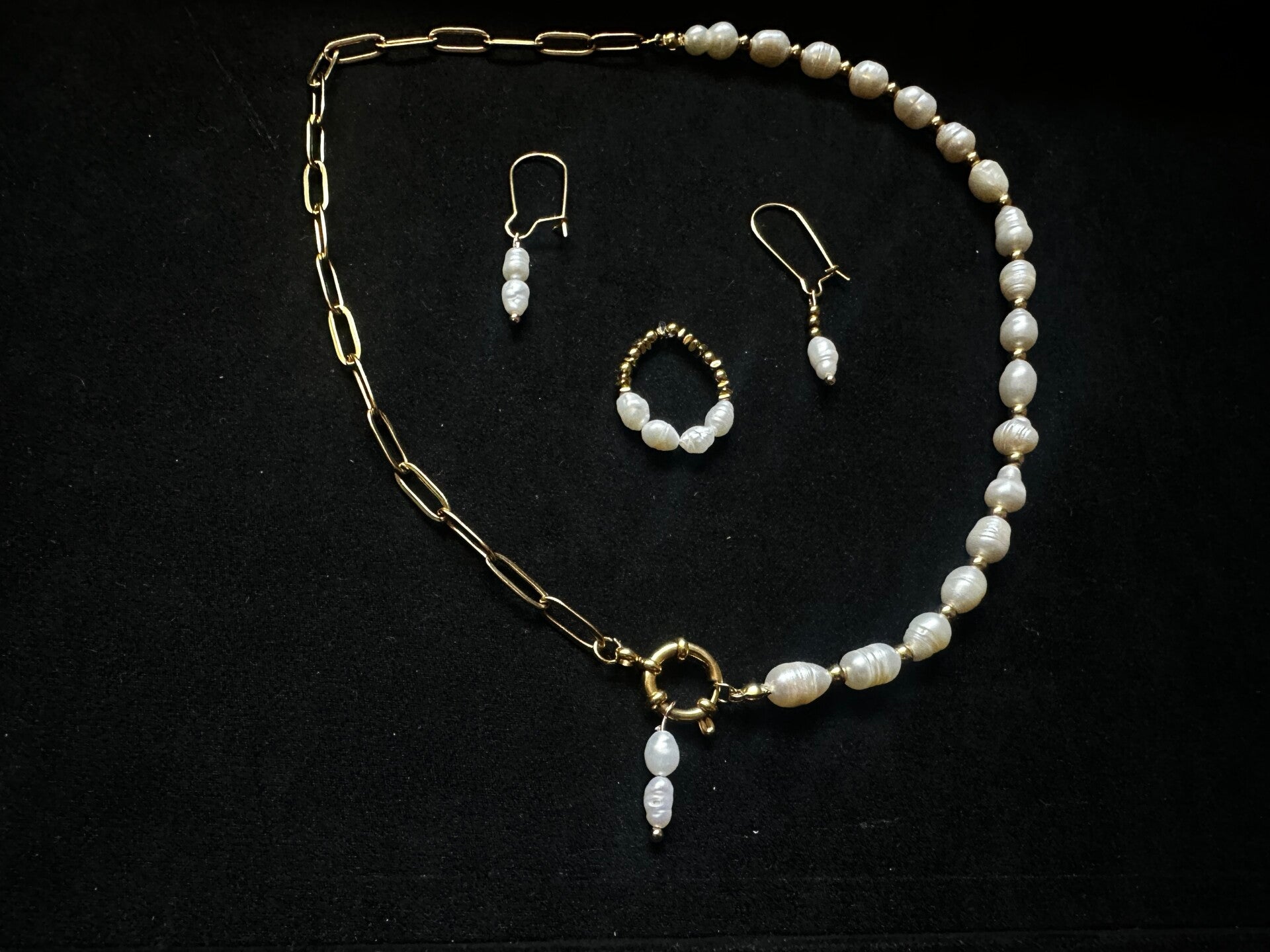 Każdy element jest unikalny dzięki naturalnym kształtom pereł – nie ma dwóch identycznych zestawów 🤍